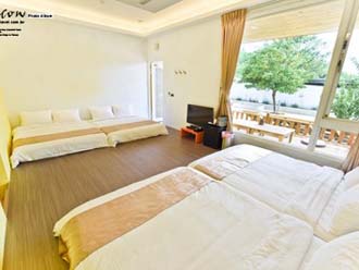 鄰近小琉球美人洞風景區,座落於海岸一隅,園區內隨處可見自然風格的裝飾與設施,從民宿的裝潢到涼亭搭建、屋內的桌椅、屋外的躺椅和彩繪裝飾,都是搭配當地景觀與特色親手建造而成。